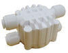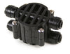 Automatic Shut-off Valve with Quick-Connect Fittings which connect and disconnect without tools. All tube connections are 1/4" with "in" and "out" labeled on the top.